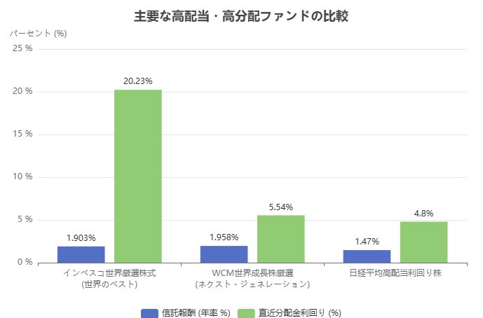 - 信託報酬: 各ファンドの公式発表に基づく年率(世界のベスト1.903%、ネクスト・ジェネレーション1.958%、日経高配当1.47%)